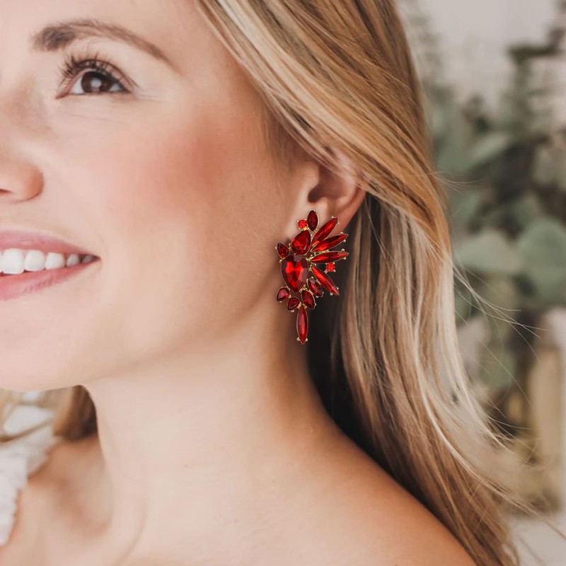 EVER FAITH Austrian Crystal Fashion Statement Earrings, Art Deco Marquise Drop Cluster Bridal Party Colorful Dangle Earrings for Woman (Red Gold-Tone)