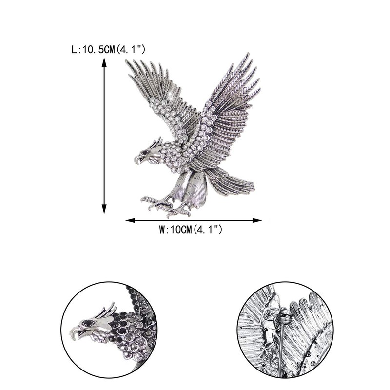 EVER FAITH Austrian Crystal Vintage Style 4 Inch Big Flying Eagle Bird Brooch Pin Clear Antique Gold-Tone