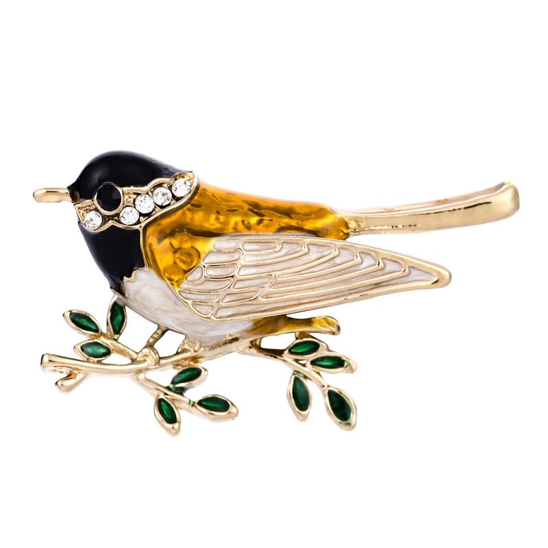 Ever Faith Bird Brooch for Women Girls, Rhinestone Crystal Yellow Enamel Adorable Cute Sparrow Bird Animal Brooch Lapel Pin