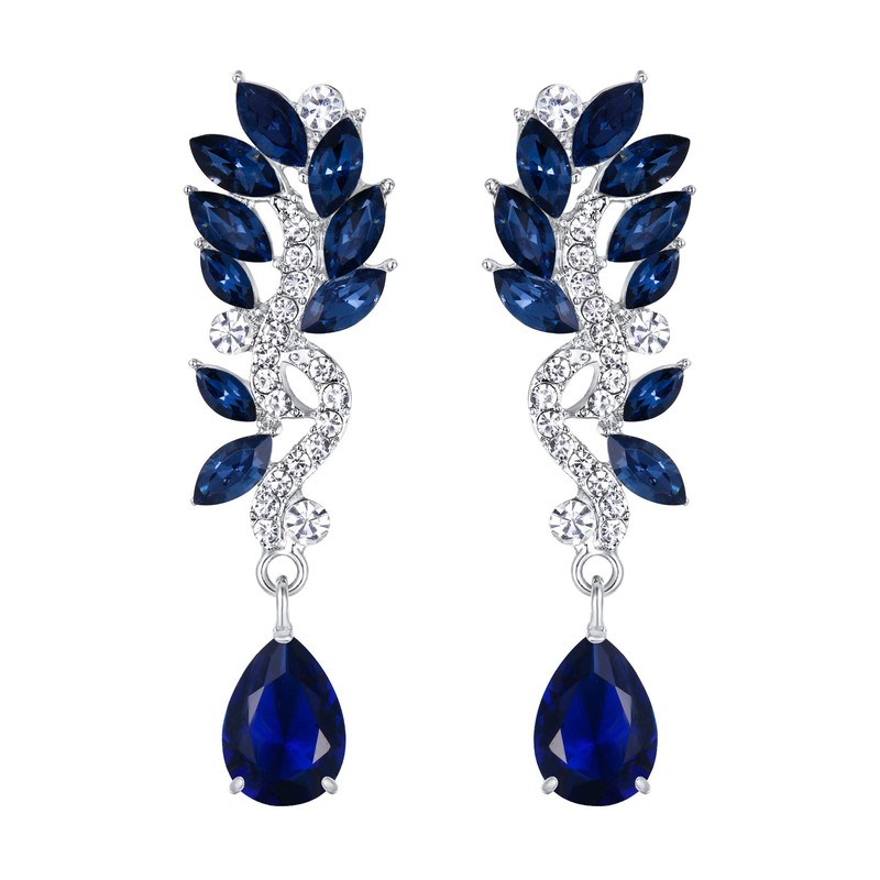 EVER FAITH Bridal Chandelier Teardrop Dangle Earrings Austrian Crystal Gift for Women Blue Silver-Tone