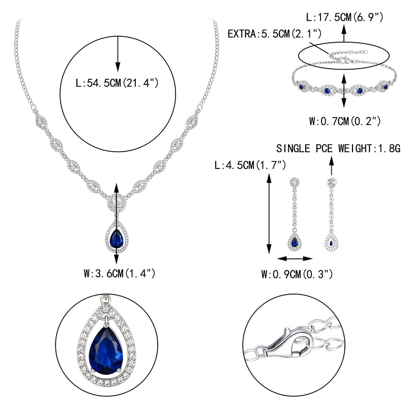 - 【Size】Necklace Chain Length: 54.5cm(21.4"), Attachment Size: 16cm(6.3")by3.6cm(1.4"), Bracelet Length: 17.5cm(6.9")-23cm(9"), Width: 0.7cm(0.2"), Earrings Size: 4.5cm(1.7")by0.9cm(0.3").