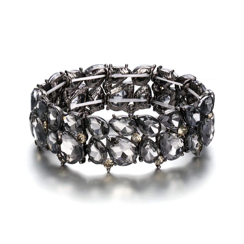 EVER FAITH Costume Jewelry Bohemia Crystal Art Deco 2 Layer Teardrop Stretch Bracelet for Women Clear Grey Black-Tone