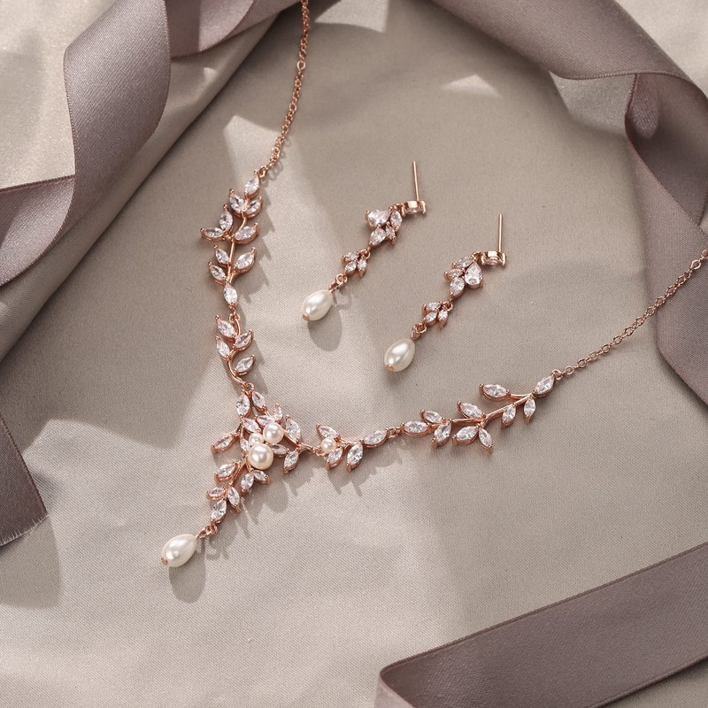 - Plants and flowers leaves have provided our designers a great deal to emulate in the way of shapes, textures, and colors of our jewelry. With a fabulous design and solid construction. It features sparkly CZs which will make a timeless accessory to any jewelry collection. This bridal jewlry set can be worn with classy casual or formal attire.