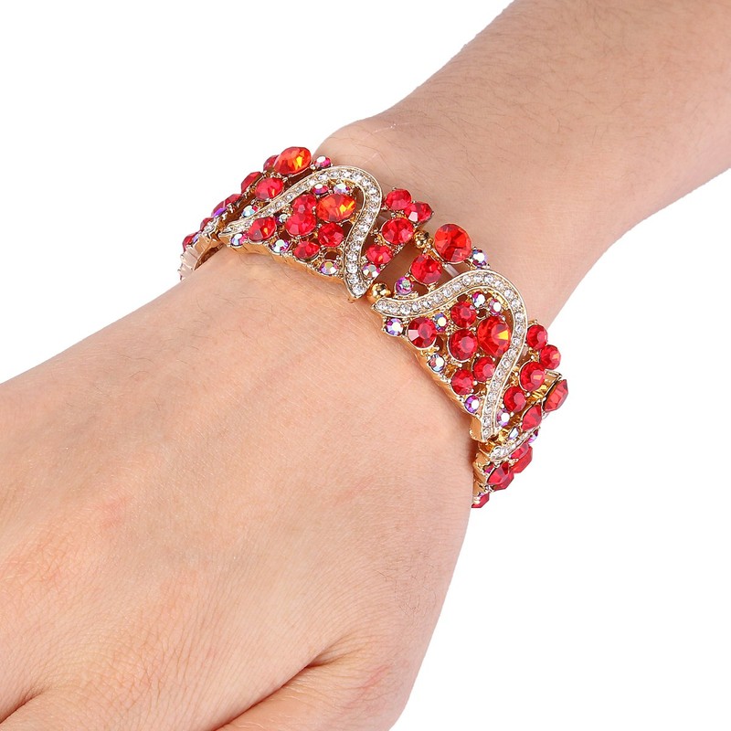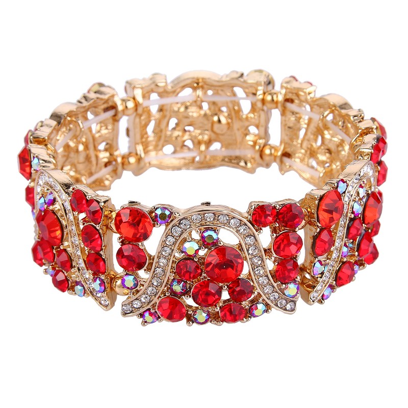 EVER FAITH Gold-Tone Austrian Crystal Art Deco Wave Bridal Elastic Stretch Bracelet Red