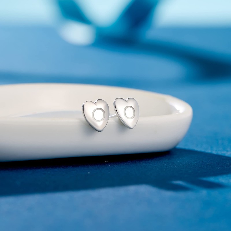 EVER FAITH Heart Letter O Stud Earrings for Girls, 925 Sterling Silver Dainty Tiny Alphabet Initial Earrings for Women Children Teenagers Girls Sensitive Ears, Sterling Silver, No Gemstone