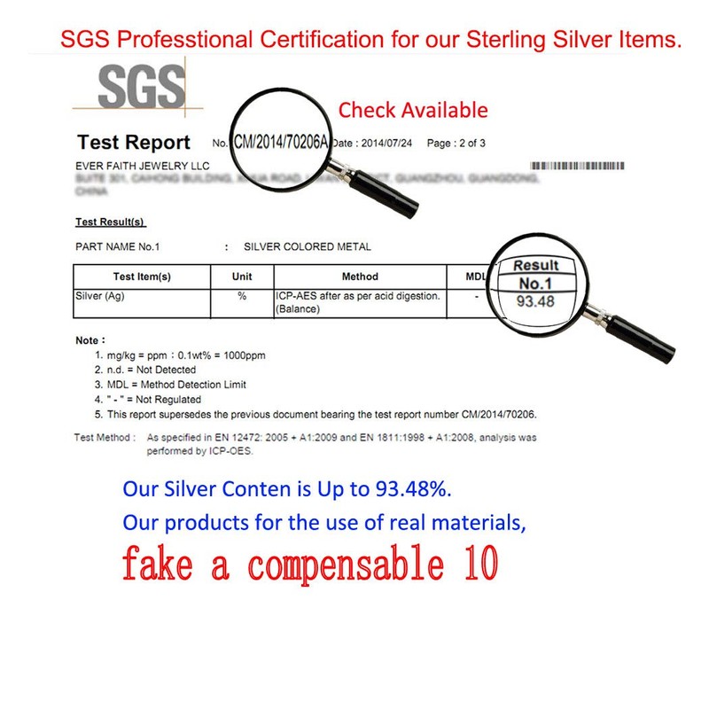 - Contamos con la certificación profesional SGS para nuestros artículos de plata esterlina. Los clientes pueden acudir a una agencia profesional para probarlos. La plata de ley 1088 también es adecuada para pieles sensibles.