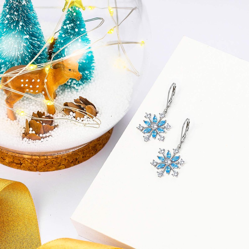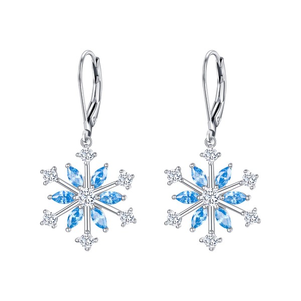EVER FAITH Snowflake Dangle Earrings, 925 Sterling Silver Snow Flake Levelback Earrings Christmas Accessory Sky Blue Zircon