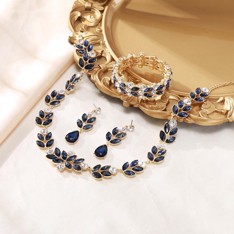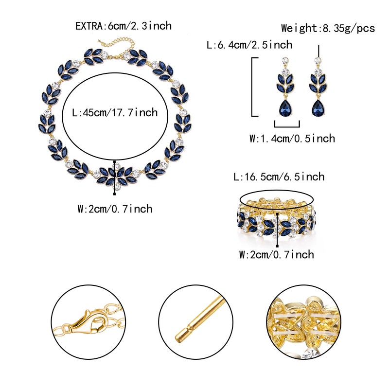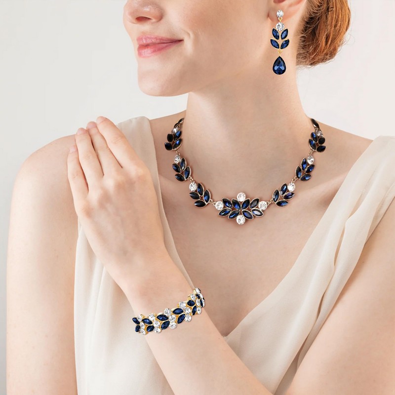 Ever Faith Wedding Jewellery Sets for Brides Bridal Sparkly Rhinestone Navy Blue Crystal Floral Leaf Teardrop Statement Choker Necklace Dangle Earrings Bracelet Set for Women