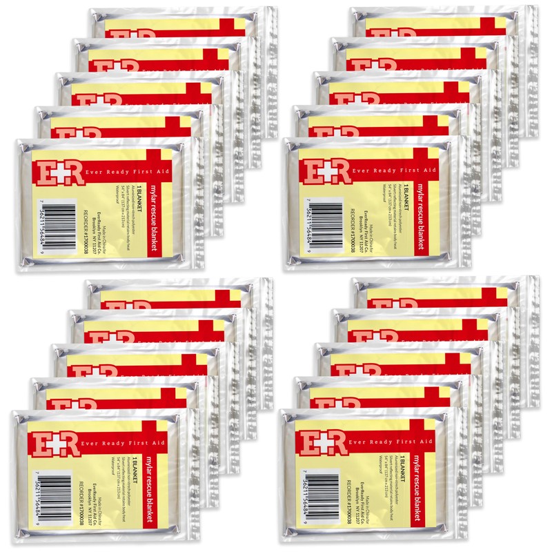 Ever Ready First Aid Mylar Rescue Blanket, Large Silver Thermal Sheet for Emergency and Survival, 54” x 84” – 20 Count