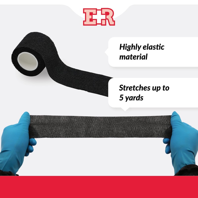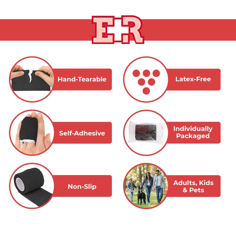 Ever Ready First Aid Self Adherent Cohesive Wrap Bandages, 2” x 5 Yards for First Aid, Sprains, Swelling, Sports, Pets, Black Color – 12 Count