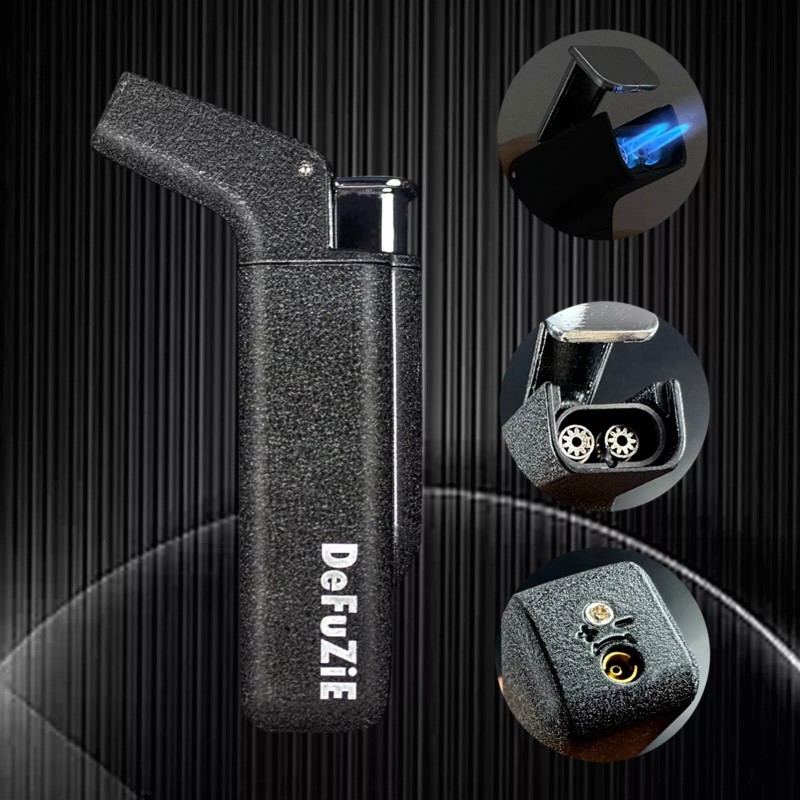 Ever Tech DefuZiE Torch Lighter Windproof Adjustable Jet Flame Butane Lighter for Cigar - Black