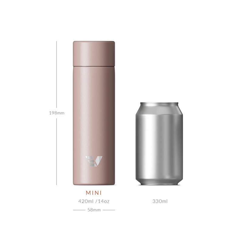 Ever Vessel Mini Stainless Steel Water Bottle 14oz - Non-insulated | Designed for Bags | Slim, Lightweight & Stylish – Rose Pink