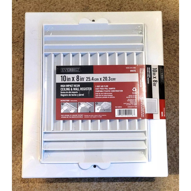 EVERBILT 10 x 8 Inch Ceiling & Wall Register White High Impact Resin 3-Way NEW