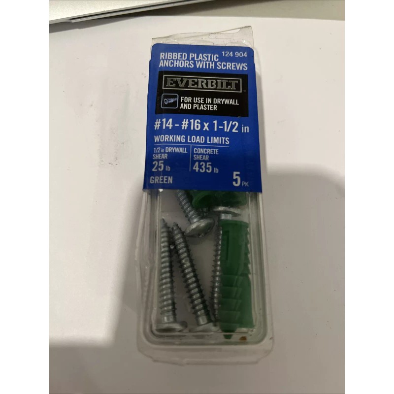 EVERBILT #14-16 5/16 IN. X 1-1/2 IN. RIBBED PLASTIC ANCHORS WITH SCREW 5pack