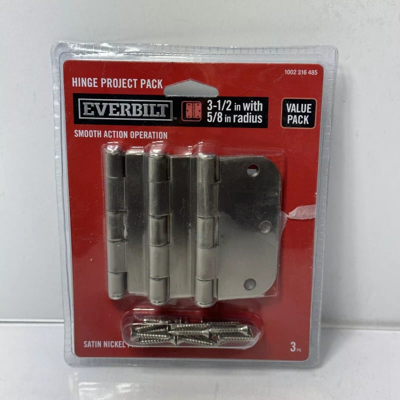 Everbilt 3-1/2" Satin Nickel 5/8" Radius Smooth Action Door Hinges, 3 pack
