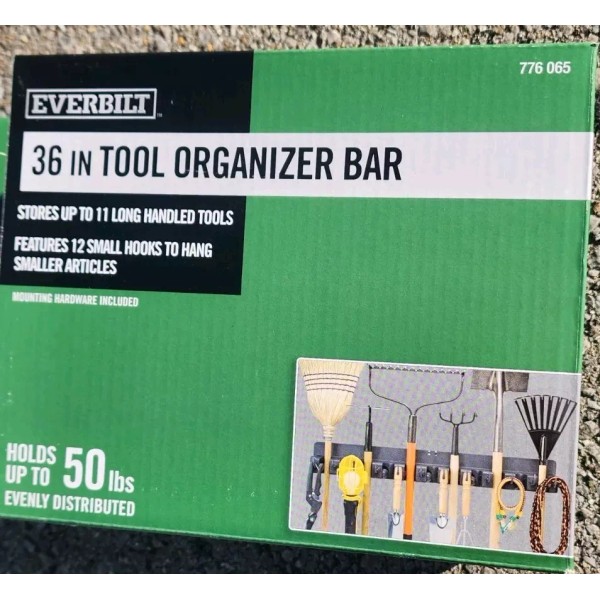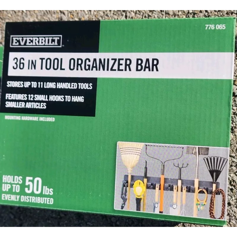 Everbilt 36in Garage Garden Tool Organizer Black 36 In Wall Mount 50lb 12 Hooks 11 Handl