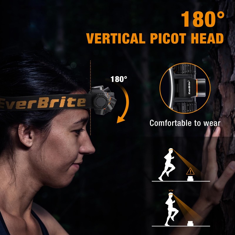 • Super brillo: equipado con luces LED de 500 lúmenes, nuestro faro recargable Everbrite actualizado puede emitir un haz súper brillante de 330 pies para una iluminación de largo alcance por la noche.