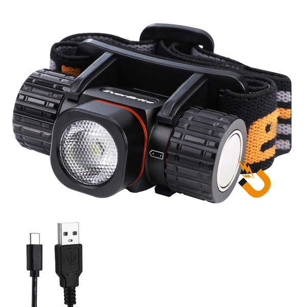EverBrite - Faro recargable de 500 lúmenes LED recargable con 4 modos de luz, base magnética y correa para la cabeza ajustable, perfecto para camping, senderismo, espeleología, pesca