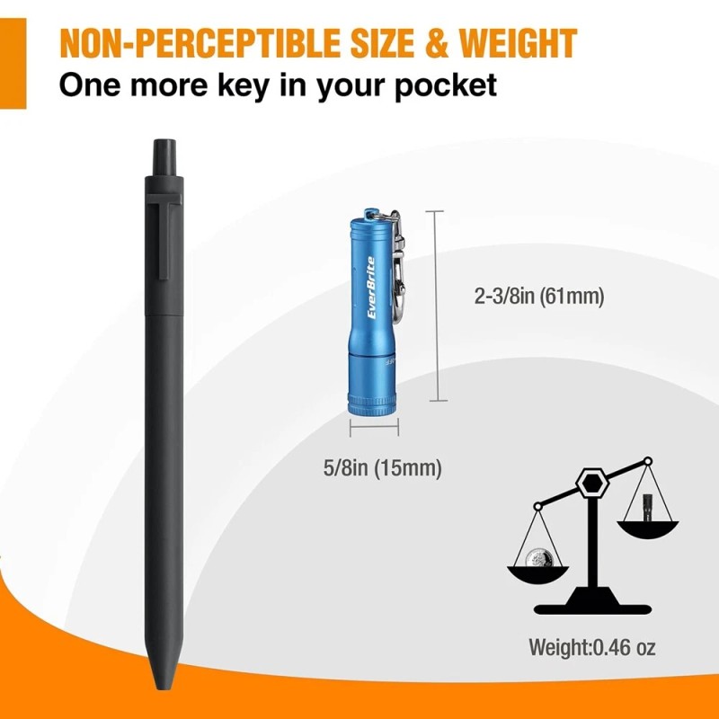 - 👍Imperceptible & Easy To Use : 2.4in/66mm long & 0.46oz/13g(battery not counted) EDC Flashlight. Even smaller than your finger and lighter than a phone's case. Easy to carry with swivel snap hook & run with a single AAA battery(included). Simple twister switch. Great for EDC, walking the dog, camping, hiking, hunting, and more.