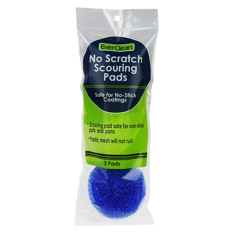 EVERCLEAN 3 Pack Non-Scratch Scouring Pad - Plastic Mesh Scourers Safely Clean Glass, Nonstick Cookware & Bakeware - 3-1/2" in Diameter Assorted Colors (6225.0)