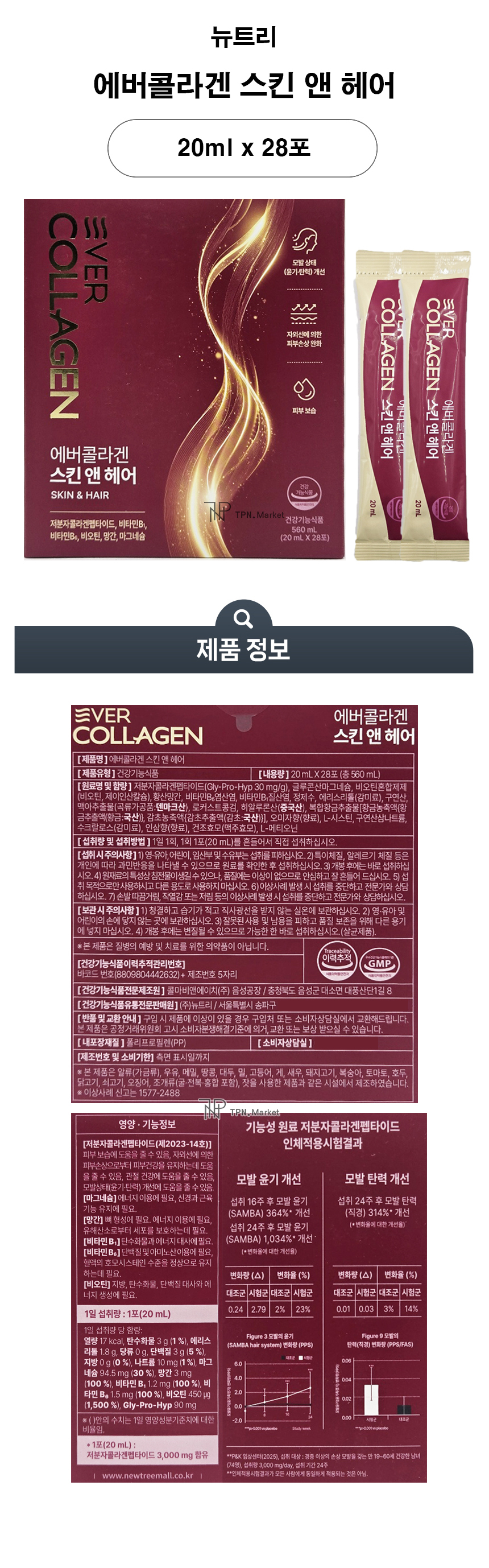Evercollagen Skin & Hair 20ml x 28 packets / 에버콜라겐 스킨 앤 헤어 20ml x 28포