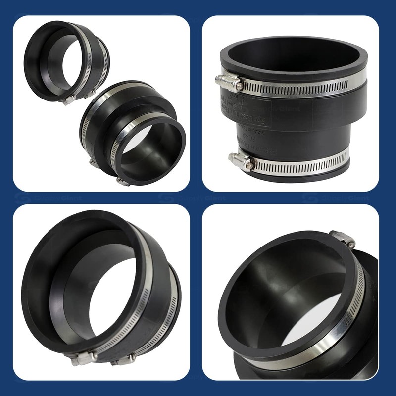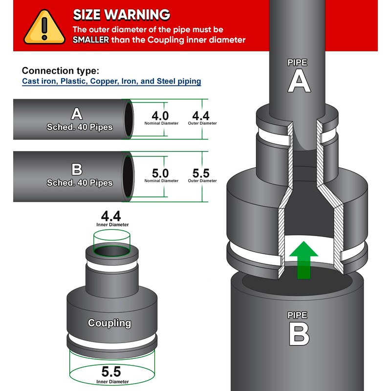 - Acoplamiento flexible Compatible con tuberías de hierro fundido, plástico, cobre, plomo y acero