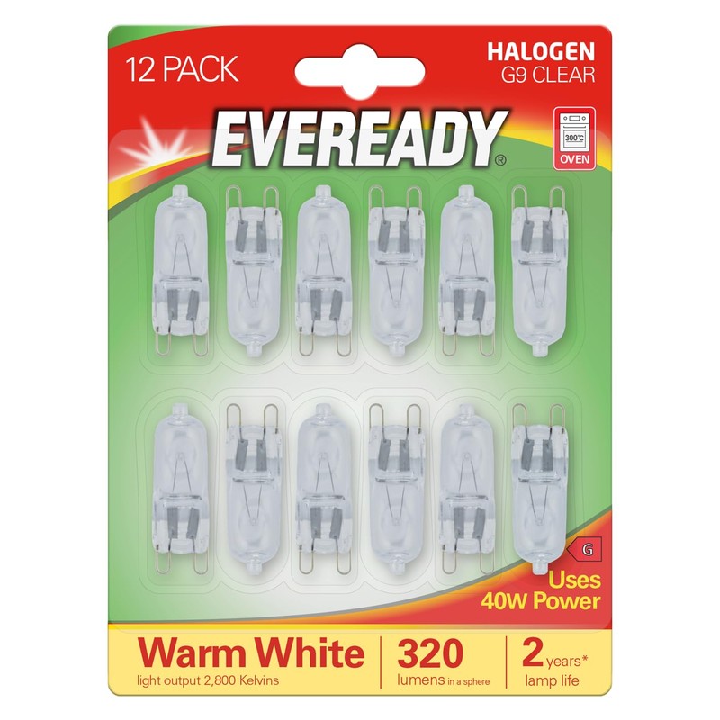 Eveready Halogen G9 Bulbs, 40W Dimmable, Warm White 2800K, 320 Lumens, Pack of 12 (12)