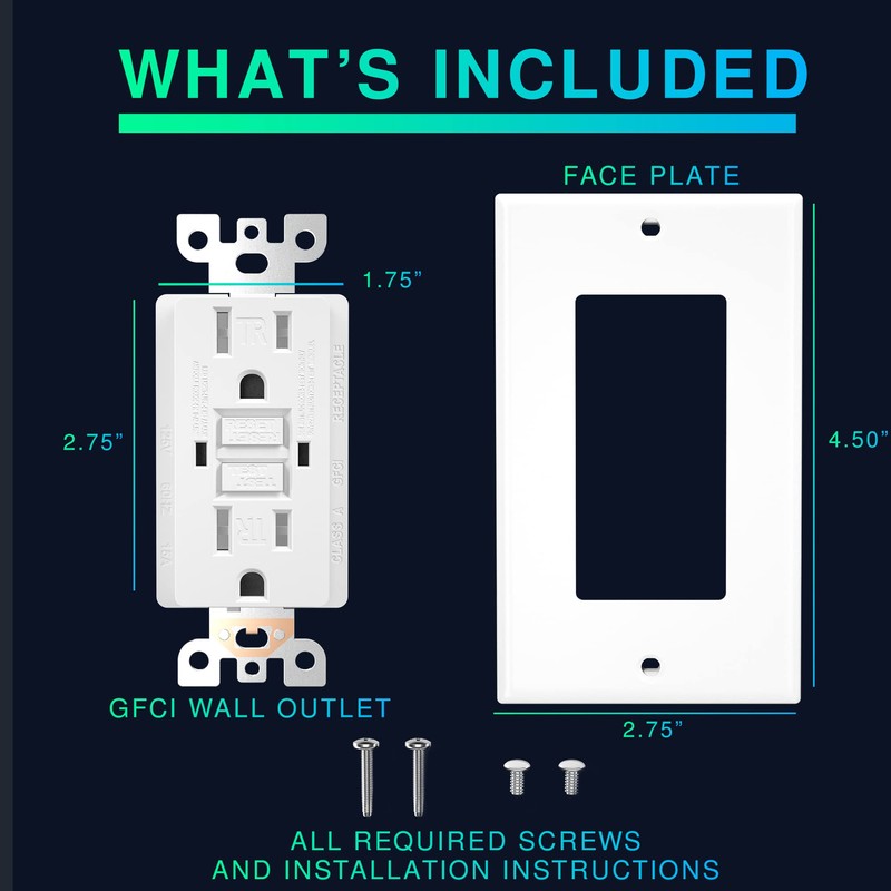 - All Components Included - These white 15 amp gfci receptacle outlets include Wall Plates and matching screws, ready for installment upon receiving electric outlet.