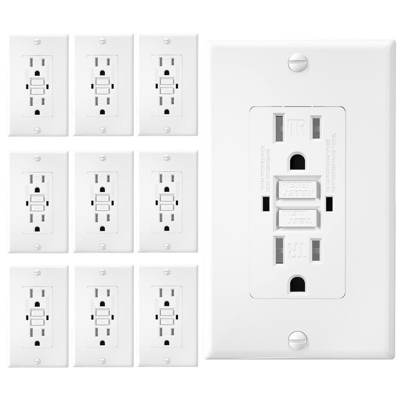 EverElectrix 10 Pack GFCI White Outlet Receptacle, Tamper Resistant GFCI Outlet 15 Amp/125-Volt, Self-Test Function with LED Indicator 15 Amp GFCI Outlets, UL/cUL Listed, Wall Plate Screws Included