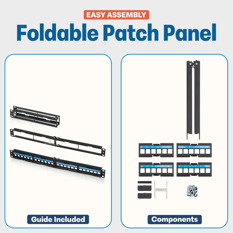 - EMS Blank Patch Panel 24 Ports Foldable c/w Lasing Bar (2-Pack)