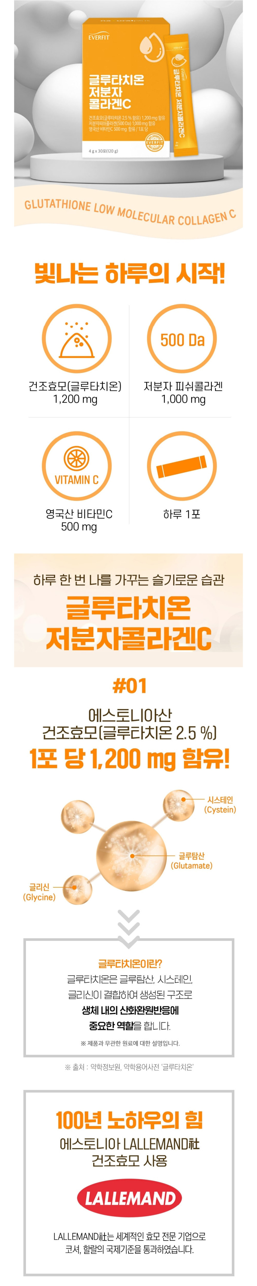 Everfit Glutathione Low Molecular Collagen Vitamin C 4g 90 packets (360g) / 에버핏 글루타치온 저분자 콜라겐 비타민C 4g 90포 (360g)