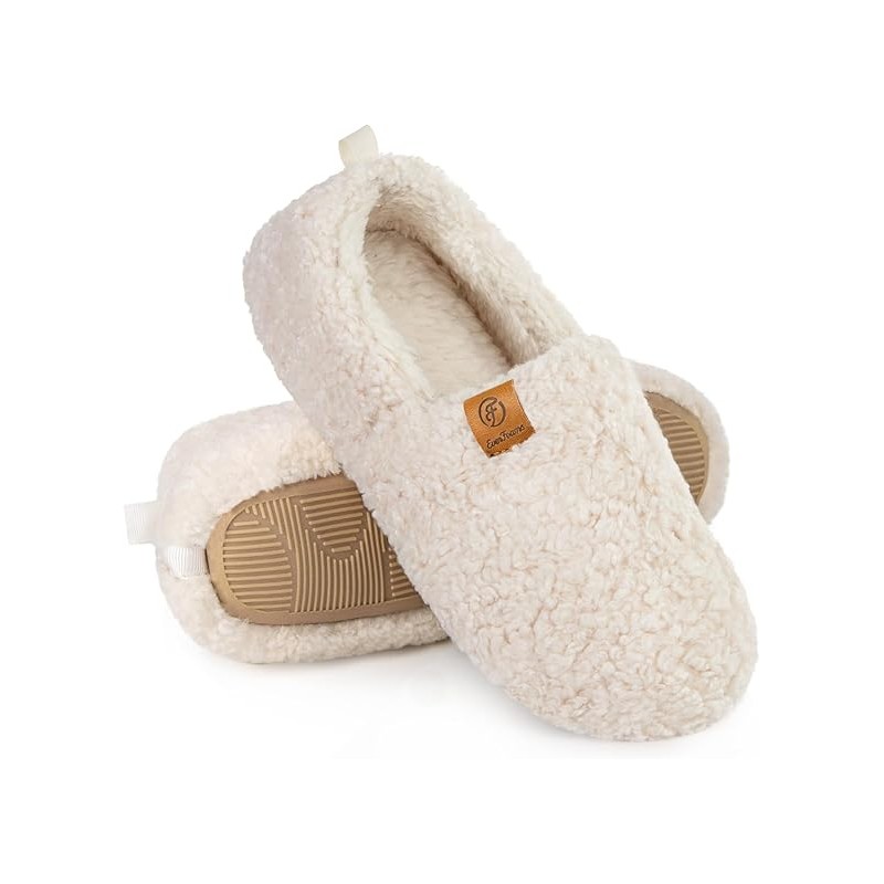EverFoams Women’s Soft Curly Full Slippers Memory Foam Lightweight House Shoes Cozy Loafer with Polar Fleece Lining, White, Size 11-12