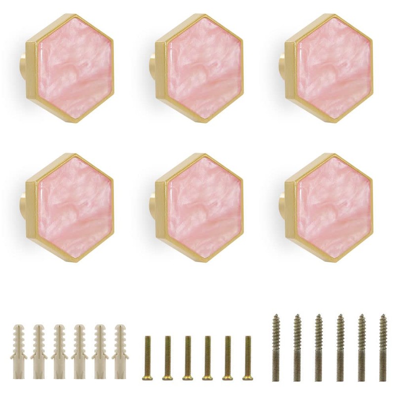 EVERGD 25mm Pure Copper Handle Shell Brass Gold Wardrobe Kitchen Cabinet Door Knobs Drawer Cupboard Hardware Pull Handle Clothes Coat Hook Modern Simple (Pink, 6)