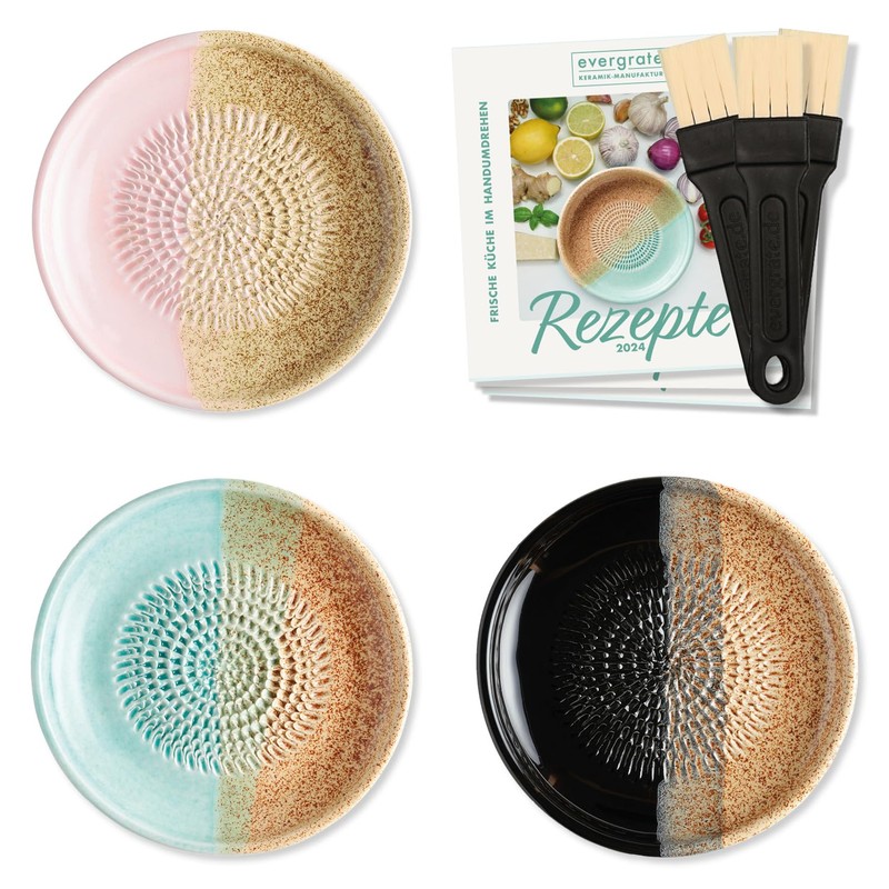 evergrate Ceramic Grater Set of 3 - Flower, Beach, Desert with Kitchen Brushes and Recipe Booklets