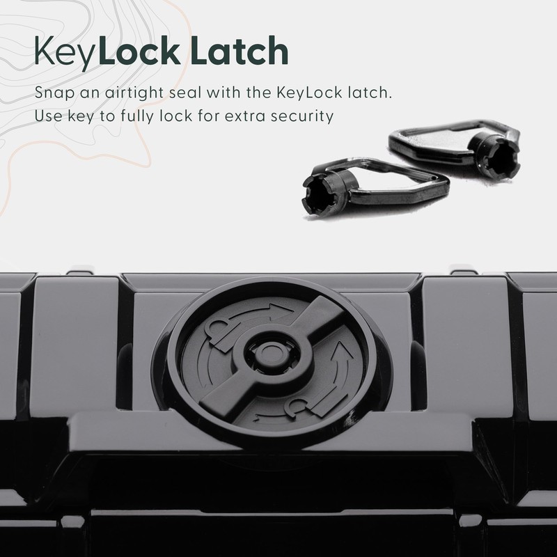 - 3x Secure Locking Latches - The 3-Step Twist Lock Latch provides 3 levels of security. Step 1 - WATERPROOF Latch firmly secures the o-ring & doubles as a flip latch pressure equalization system Step 2 - Twist Lock Latch (by hand) Step 3 - Keyed Protection uses the key to turn the Twist Lock further and keep others out!