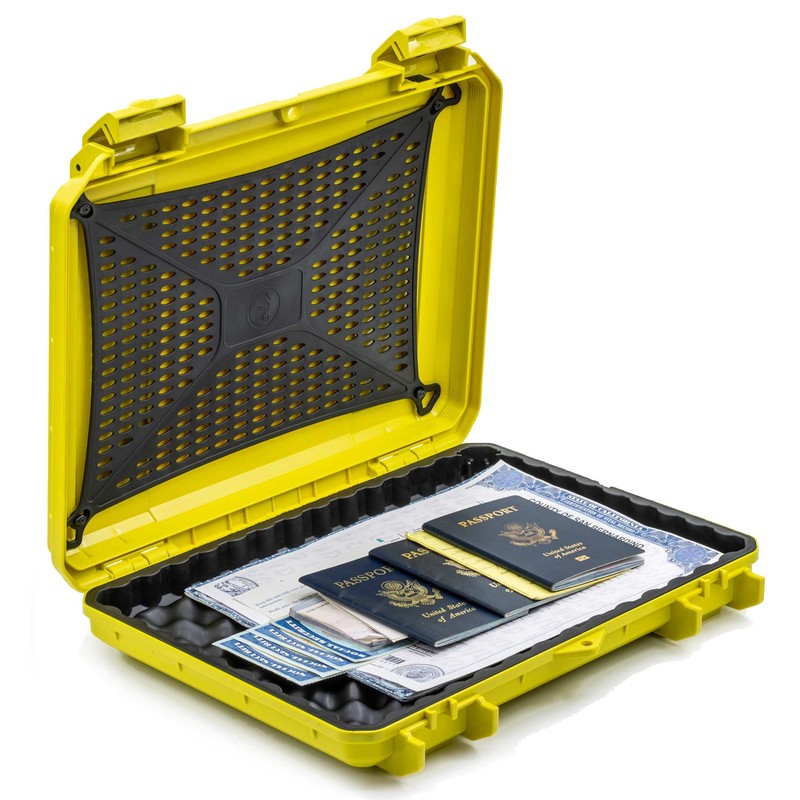 Evergreen 85 Document Discrete Locking Storage Protective Case - Ideal for Harsh Environments, Flooding, Boating, Smoke Proof, Travel Safe/Mil Spec/Waterproof/USA Made - for Documents (Yellow)