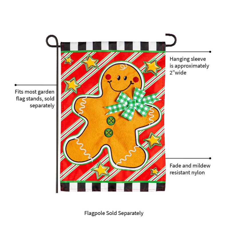 Evergreen Flag Patterned Gingerbread Man Applique Garden Flag | 12x18 Inches Double Sided Christmas Garden Flag for Outside | Weather and Fade Resistant | Outdoor Flag Décor for Home, Yards and