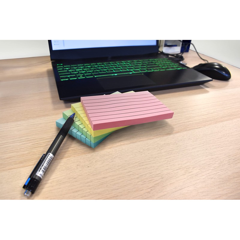 - This product contains 4 pads of assorted pastel coloured ruled sticky notes with 100 sheets per pad