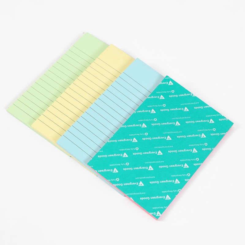 Evergreen Goods Lined Sticky Notes| Large Pastel Notes for Study, Revision & Office 4 Pads (Yellow, Pink, Blue, and Green) Strong Adhesion, 100 Sheets/Pad
