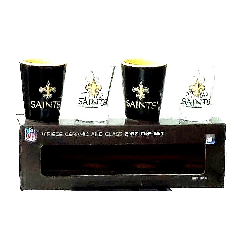 Evergreen New Orleans Saints 4-piece ceramic and glass 2 ounce shot glass set