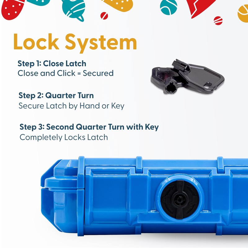 - 3X Secure Locking Latches - 3 levels of security with our Twist-Lock-Latch; secure latch seals for waterproof protection; twist lock prevents case from accidentally opening; key lock keeps others out