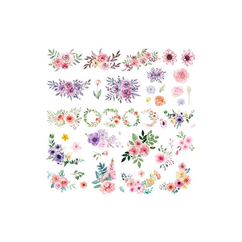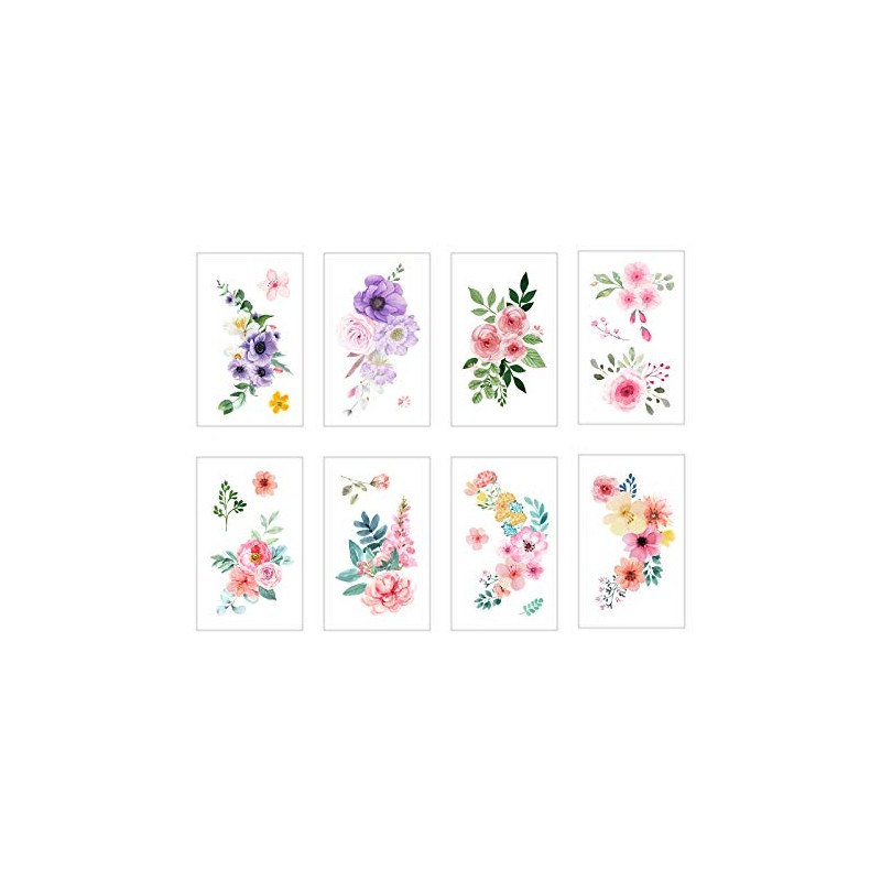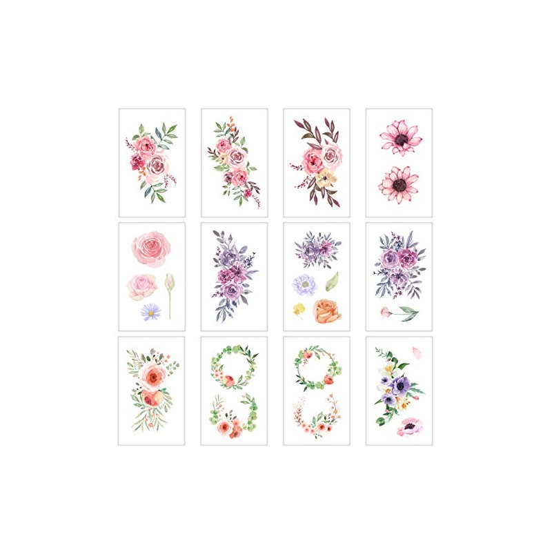 Everjoy Flowers Temporary Tattoos Stickers, Watercolor Roses, Peony, Daisy, Botanical Body Art Fake Tattoos for Women, Girls and Kids - 20 Pcs