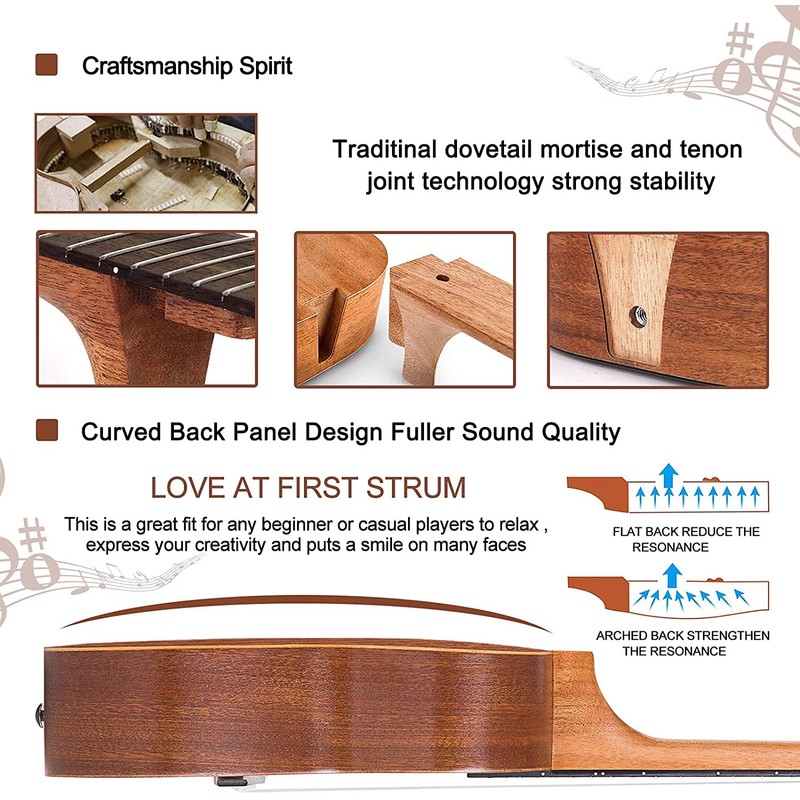 - ✅ FEATURES&AMAZING SOUND: Features an Arched Back to give longer sustain & fuller sound! Mahogany/ Sapele body brings you richer and brighter sound; Rosewood fingerboard and bridge provide a comfortable playing feel