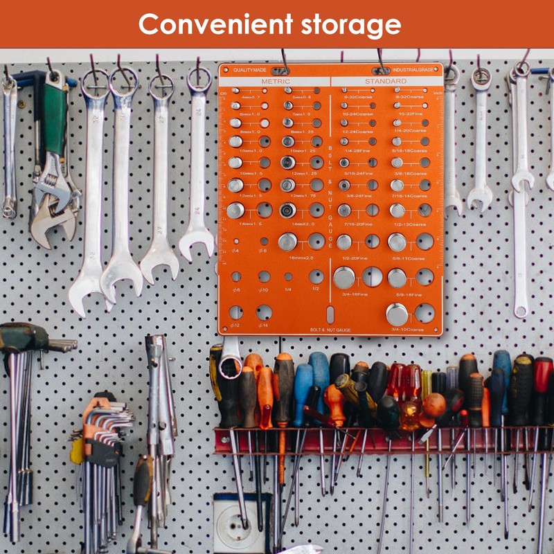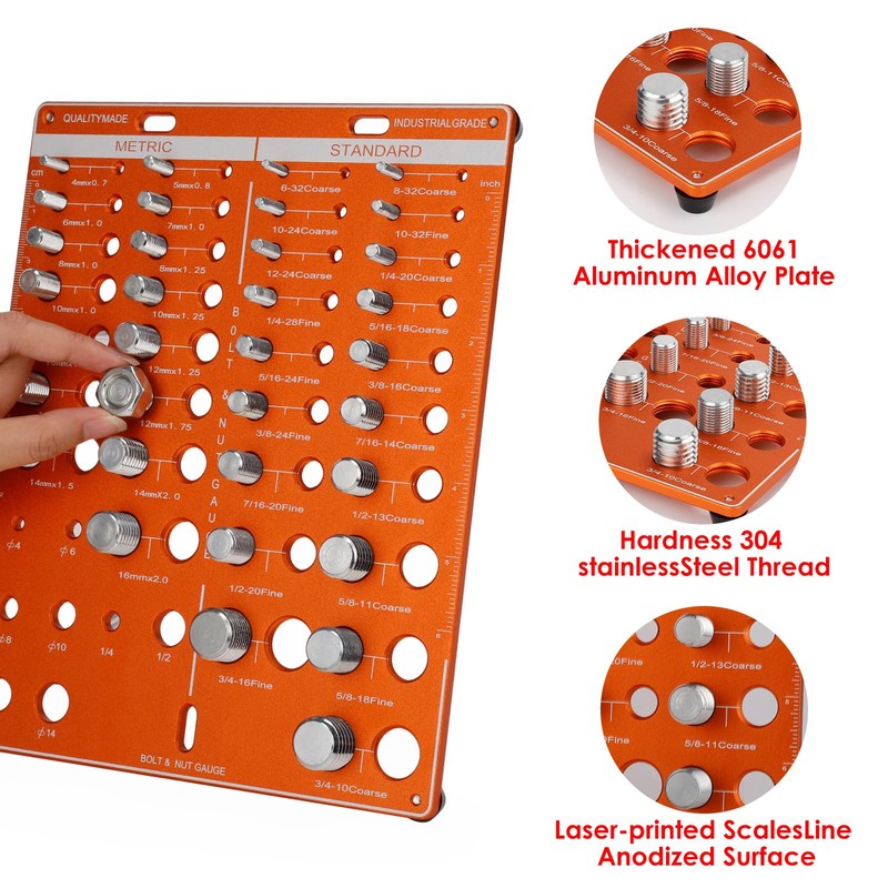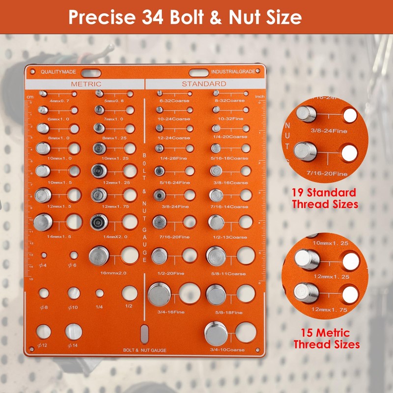 - Convenient and Portable: Bolt thread checker standard and metric features dual holes at the top, allowing it to be easily hung on a wall, thus saving considerable space.This thread gauge bolt identifier board takes only 2-3 seconds to determine the type of bolt or nut, significantly reducing the time spent on this task