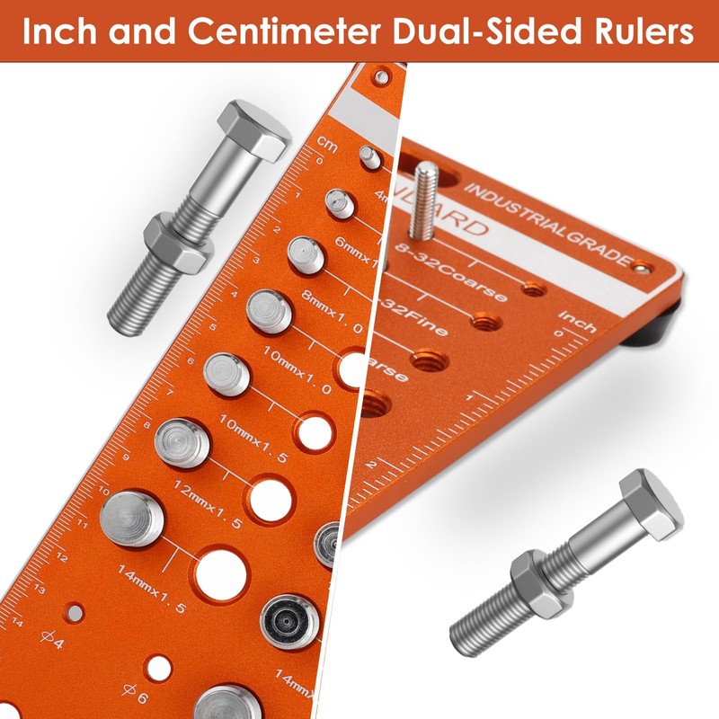 - Exceptional Craftsmanship: Our bolt size and thread gauge features an anodized protective coating combined with laser-etched markings, ensuring enduring durability. This wall mount screw size chart and thread size checker is designed for long-lasting use