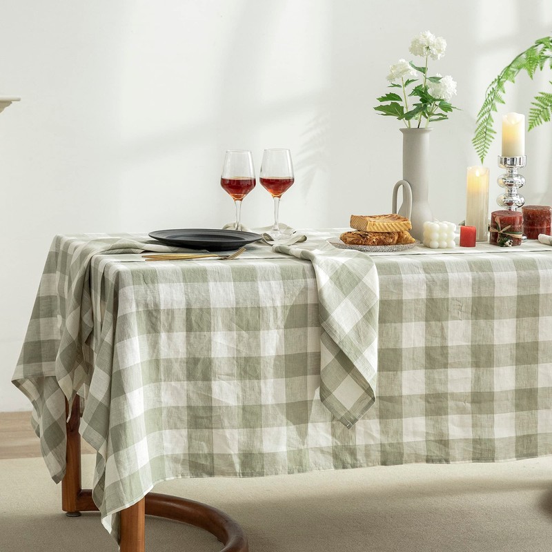 EVERLY 100% Yarn-Dyed Linen Rectangle Tablecloths 60x108Inches for Dining,Buffet Parties,Picnic,Events and Restaurants,Decorative Halloween,Thanksgiving Machine Washable Tablecloths-Sage Green Plaid