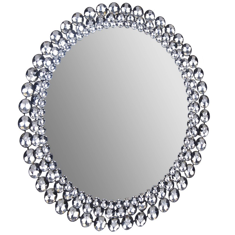 add glamorous sophisticated style to your home decor with this round jeweled mirror.