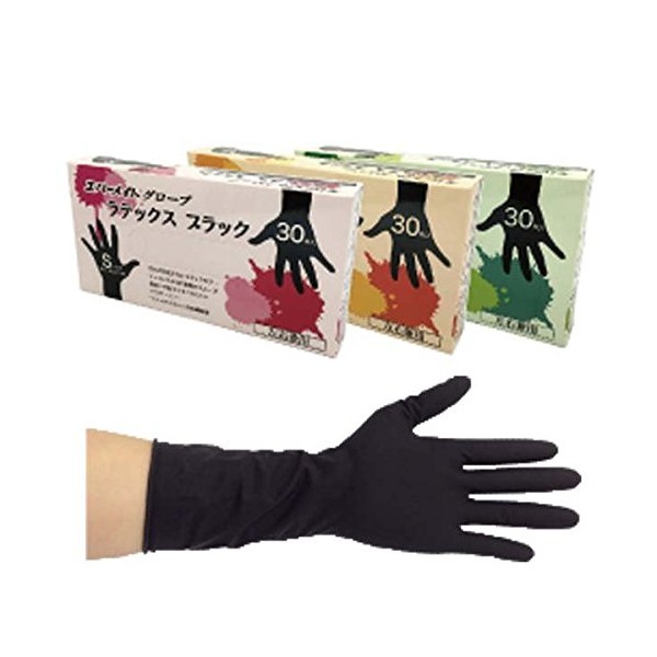 Evermate Gloves, Latex Black, 30 Pieces, Left & Right Type, Powder Free (S: 6.0 - 6.5 inches)