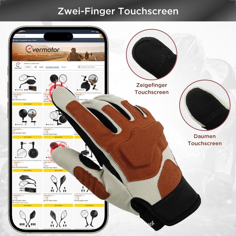 evermotor Summer Motorcycle Gloves - Professional Sports Gloves for Motorcycle, Motocross, Scooters, Moped, Quad, ATV and Mountain Bike, M
