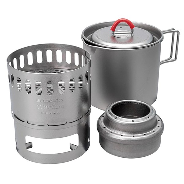 Evernew Titanium Lightweight Camping Mug Pot Stove Set, 500